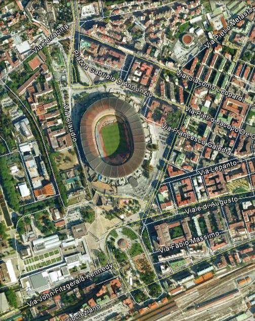Il San Paolo non è l’unico stadio di grandi dimensioni posto in un contesto fortemente urbanizzato. Alcuni dei più famosi e grandi impianti del mondo sono situati all’interno delle città. Valgano per tutti il Santiago Bernabeu a Madrid e il Nou Camp a Barcellona o, ancora, il Maracanà a Rio de Janeiro, tutti abbondantemente sopra gli 80.000 posti a sedere.