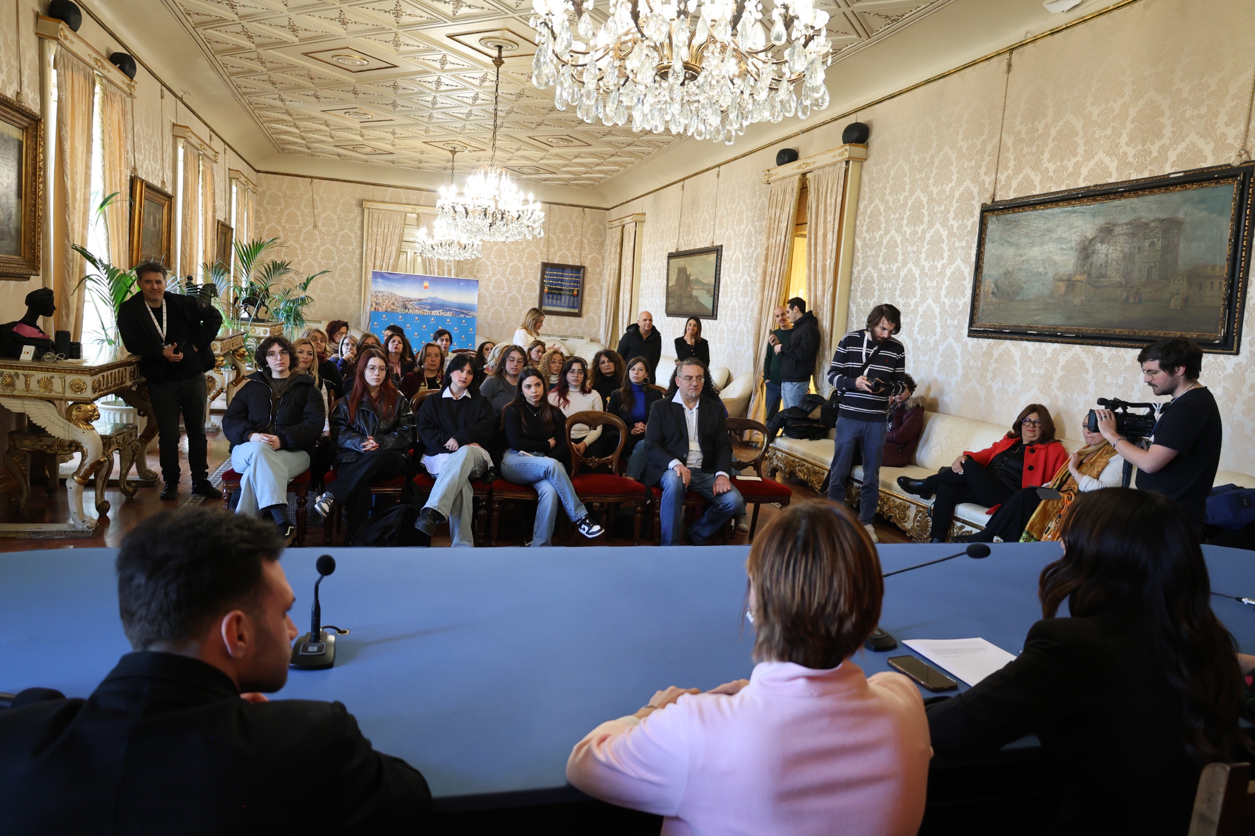 Nell’ambito delle iniziative del Marzo Donna in Sala Giunta a Palazzo San Giacomo, la presidente del Consiglio Comunale Enza Amato, l’assessora all’Istruzione e Famiglie Maura Striano e l’assessora alle Pari Opportunità Emanuela Ferrante hanno presentato l’iniziativa di proiezione in 21 scuole aderenti dello spettacolo teatrale "La vita delle donne: il silenzio uccide" attraverso Proscaenia, la prima piattaforma streaming interamente dedicata al teatro. Presente anche il direttore artistico di Proscaenia, l’attore Maurizio Casagrande.